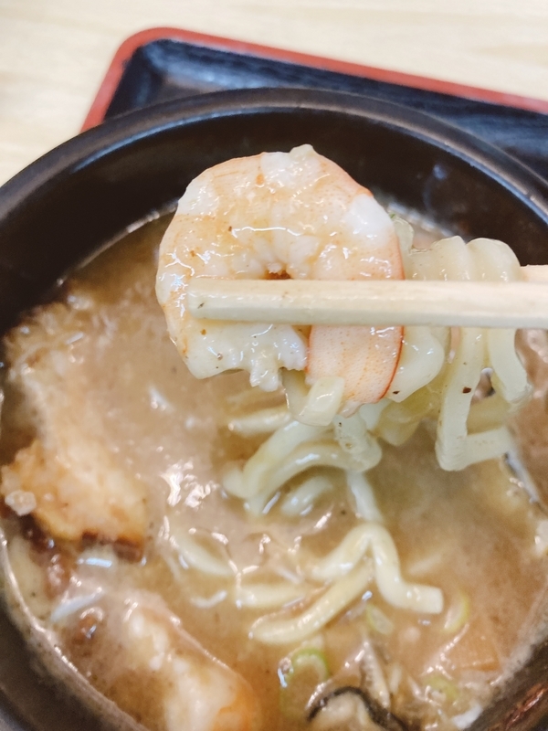 割りスープで温かくなって、また好みのシーフード臭のスープに戻りました。